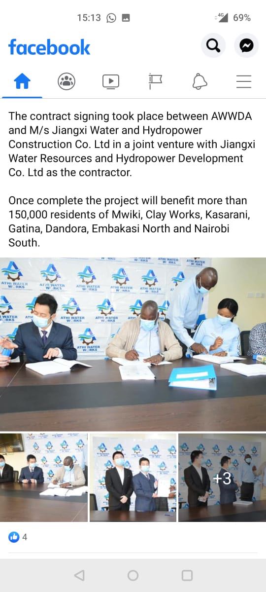 2021年3月19日當(dāng)?shù)貢r間上午八時,肯尼亞分公司與肯尼亞阿西水務(wù)開發(fā)局在阿西水務(wù)大廈簽訂了Mwiki污水管道項目施工合同。肯尼亞公司總工程師劉瑞林代表分公司與阿西水務(wù)局首席執(zhí)行官麥克共同出席簽約儀式并簽定施工合同。