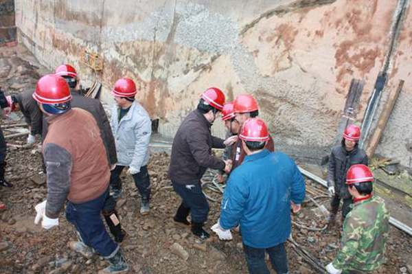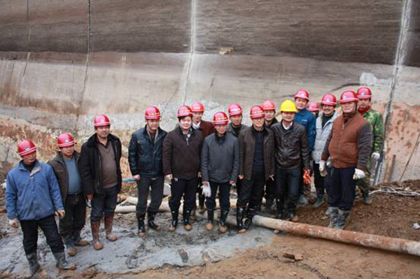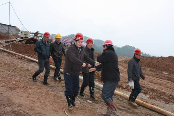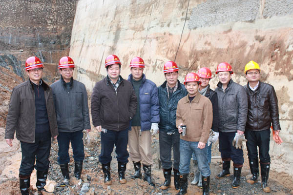 董事長、總經(jīng)理王元旦一行首先來到基坑澆筑、混凝土攪拌站等施工現(xiàn)場進行察看,與施工人員一一握手,并聽取了春節(jié)期間帶領員工奮戰(zhàn)在施工一線的公司副總經(jīng)理聶玉和的生產(chǎn)情況匯報。董事長、總經(jīng)理王元旦詳細詢問了攪拌站的生產(chǎn)能力能否滿足施工要求,工程的進展情況及后期施工中的各項措施,對項目部全體員工放棄節(jié)假日搶工期、保質量、抓進度的奉獻精神給充分肯定和高度評價,他勉勵大家保證質量安全的前提下,抓緊時間完成大壩防滲面板的施工、再苦再累也要咬緊牙關挺過去,并要求施工項目部合理安排好大家春節(jié)期間的工作和生活。