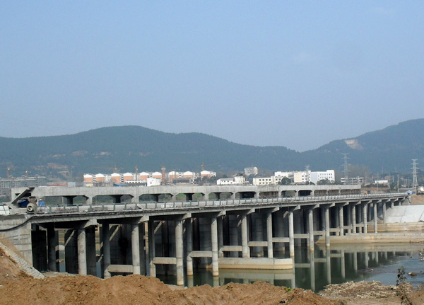 施工過程中的橋閘工程(閘壩、橋面、引道、路燈、綠化景觀等)