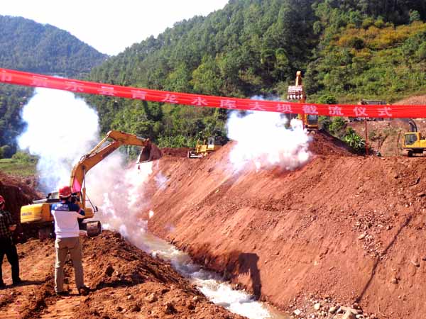青龍水庫是一座供農(nóng)業(yè)灌溉、灌區(qū)農(nóng)村人畜飲用水、縣城供水為主的蓄水工程。水庫位于普洱市景東縣錦屏鎮(zhèn)、文龍鄉(xiāng)境內(nèi)的龍樹河上,水庫樞紐由攔河壩、輸水隧洞、溢洪道組成。我公司于今年6月中標(biāo)承建了大壩及溢洪道施工標(biāo),中標(biāo)價1.1億元。青龍水庫大壩圍堰的成功截流,標(biāo)志著該項目進(jìn)入全面施工階段。