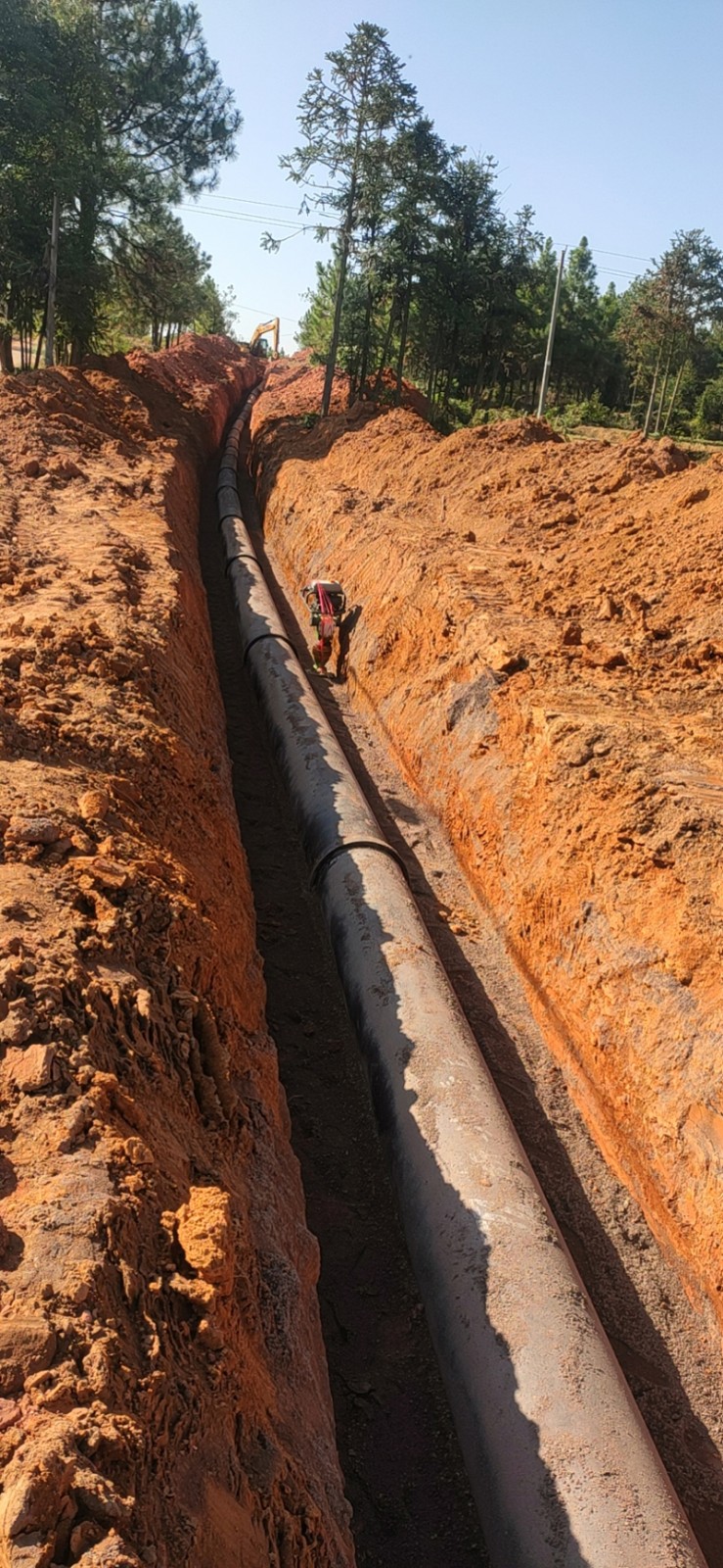 集團(tuán)承建的鷹潭市余江區(qū)城鄉(xiāng)供水一體化一期項(xiàng)目南、北線供水主管網(wǎng)鋪設(shè)工程位于鷹潭市余江區(qū),主管總長(zhǎng)75.3km,合同投資10473.3萬(wàn)元,合同工期174天。該項(xiàng)目面臨時(shí)間緊,任務(wù)重等重重困難,為順利推進(jìn)項(xiàng)目建設(shè),施工項(xiàng)目部人員爭(zhēng)分奪秒,晝夜奮戰(zhàn),抓住晴好天氣,搶抓施工進(jìn)度,確保工程按時(shí)完工。