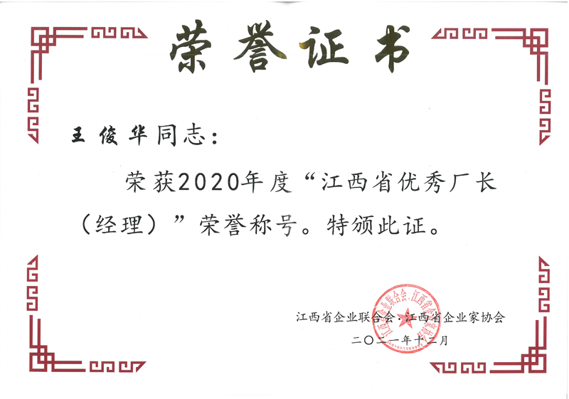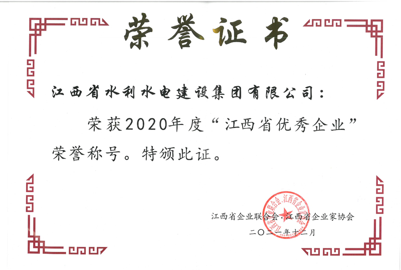 近日,江西省企業(yè)聯(lián)合會(huì)、江西省企業(yè)家協(xié)文件《關(guān)于表彰“2020年度新時(shí)代江西杰出企業(yè)家、江西省優(yōu)秀企業(yè)、江西省優(yōu)秀企業(yè)家、江西省優(yōu)秀廠長(zhǎng)(經(jīng)理)”的決定》公布了2020年度江西省優(yōu)秀企業(yè)等獎(jiǎng)項(xiàng)的評(píng)選結(jié)果。集團(tuán)獲評(píng)江西省優(yōu)秀企業(yè);集團(tuán)董事長(zhǎng)王元旦獲評(píng)新時(shí)代江西杰出企業(yè)家;集團(tuán)常務(wù)副總裁王俊華獲評(píng)江西省優(yōu)秀廠長(zhǎng)(經(jīng)理)。至此,集團(tuán)已連續(xù)二十二年被評(píng)為“江西省優(yōu)秀企業(yè)”。榮譽(yù)是一種肯定,更是一種責(zé)任,集團(tuán)將以此為動(dòng)力,新的一年再接再厲,繼續(xù)以優(yōu)秀水利龍頭企業(yè)的標(biāo)準(zhǔn)嚴(yán)格要求自己,不斷超越自我,開創(chuàng)企業(yè)發(fā)展多元化新格局,持續(xù)提高市場(chǎng)競(jìng)爭(zhēng)力和社會(huì)影響力。