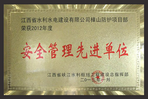 2013年2月,江西省峽江水利樞紐工程建設(shè)總指揮部授予我公司樟山防護(hù)工程項(xiàng)目部“2012年度安全管理先進(jìn)單位”榮譽(yù)稱(chēng)號(hào),項(xiàng)目管理人員彭紅軍、鄧敏被評(píng)為峽江水利樞紐“安全生產(chǎn)先進(jìn)個(gè)人”。