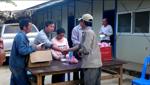 項目管理人員給越南員工送上春節(jié)禮品和慰問金