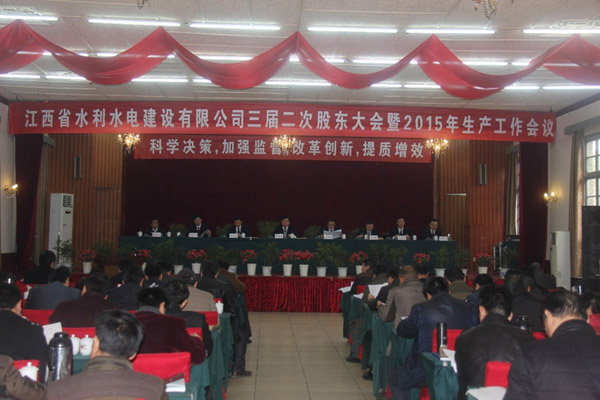 春回大地,萬象更新,正值全國兩會召開之際,江西省水利水電建設有限公司第三屆二次股東大會暨2015年生產(chǎn)工作會議,于3月10日在南昌隆重召開。公司董事、監(jiān)事、股東、中高層管理人員及員工代表共86名代表會聚一堂,共商公司改革發(fā)展大計,描繪企業(yè)美好藍圖。