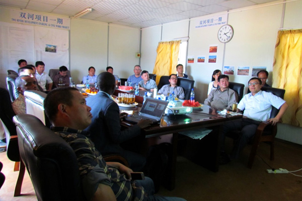 下午2時,在雙河一期會議室聽取了業(yè)主Centum投資集團代表做的題為“投資、發(fā)展、效益”的演講。隨后,中航技肯尼亞分公司副總經(jīng)理吳迪做了補充,詳細(xì)介紹了雙河項目的股權(quán)結(jié)構(gòu),深入分析了雙河項目的投資環(huán)境,并對收益前景做了合理的預(yù)測。董事長王元旦表示對雙河項目充滿信心,相信與中航技的合作能帶來雙贏,希望雙方增強交流,進(jìn)一步深化投資合作,實現(xiàn)互利共贏、共同發(fā)展的新局面。