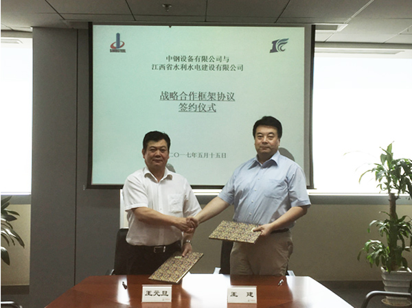 2017年5月15日,江西省水利水電建設(shè)有限公司與中鋼設(shè)備有限公司戰(zhàn)略合作框架協(xié)議簽約儀式在北京舉行。公司董事長(zhǎng)王元旦與中鋼設(shè)備有限公司總經(jīng)理王建代表雙方簽署了戰(zhàn)略合作框架協(xié)議。公司海外公司副總經(jīng)理熊昊冠和中鋼設(shè)備能源與基礎(chǔ)設(shè)施部副部長(zhǎng)閆永軍、國(guó)際市場(chǎng)部副部長(zhǎng)王思奇、市場(chǎng)主管姬曉軍參加簽字儀式。王建表示中鋼公司有著海外平臺(tái)優(yōu)勢(shì),江西水建擁有水利水電、房建和市政領(lǐng)域的技術(shù)優(yōu)勢(shì),希望雙方以此次戰(zhàn)略合作簽署為契機(jī),借助各自在資源、業(yè)務(wù)等方面的綜合優(yōu)勢(shì),在巴基斯坦市場(chǎng)以及其他國(guó)別市場(chǎng)攜手共進(jìn),推進(jìn)重點(diǎn)項(xiàng)目落地,共謀發(fā)展。公司董事長(zhǎng)王元旦對(duì)中鋼設(shè)備的支持表示感謝。他表示此次合作將會(huì)是一個(gè)友好的開(kāi)端,真誠(chéng)希望雙方在國(guó)家“一帶一路”戰(zhàn)略指引下進(jìn)一步加深交流,探索多方位、深層次合作,實(shí)現(xiàn)互利共贏。