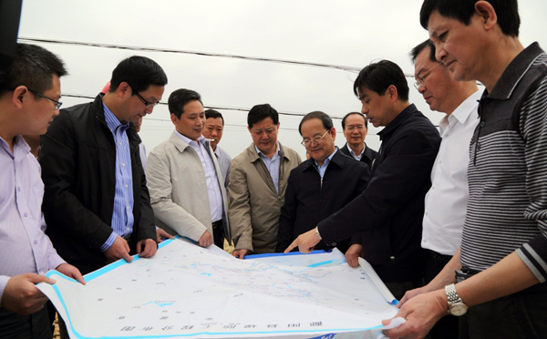 4月15日上午,江西省省委副書記、省長鹿心社來到我公司承建的鄱陽湖區(qū)二期防洪工程第六個單項鄱陽縣饒河聯(lián)圩除險加固工程饒河1標施工現(xiàn)場進行視察調(diào)研。