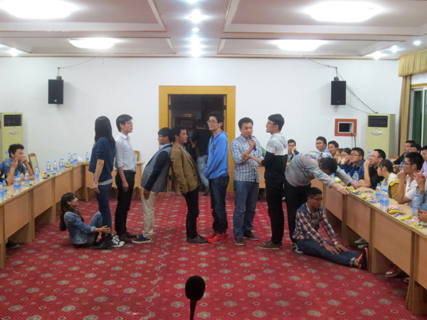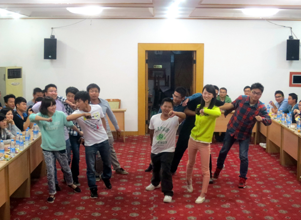 4日下午,大家抵達(dá)廬山西海景區(qū)賓館后,全體人員進(jìn)入整隊分組環(huán)節(jié),推薦隊長和政委,選好隊歌,設(shè)計隊名、口號和LOGO,為增強(qiáng)隊員間的溝通協(xié)作能力,要求各組利用下午的時間排練出一個晚會節(jié)目。各組隊員們顧不上休息,立刻進(jìn)入了緊張的策劃和排練中。晚上7點(diǎn)半,五四青年節(jié)文藝晚會正式開演,“Dream night隊”“青春夢想隊”“超越隊”等名字紛紛閃亮登場,“我的名字叫青春,我的青春在水建”,“舞動青春,展現(xiàn)自我,放飛夢想,擁抱明天”,“超越夢想,怒放生命”等口號一次又一次迎來全場的陣陣歡呼。隨后的隊歌合唱和節(jié)目表演,青年員工們盡情高歌,張揚(yáng)青春,抒發(fā)對夢想的執(zhí)著和對未來的希望,晚會現(xiàn)場掌聲雷動。