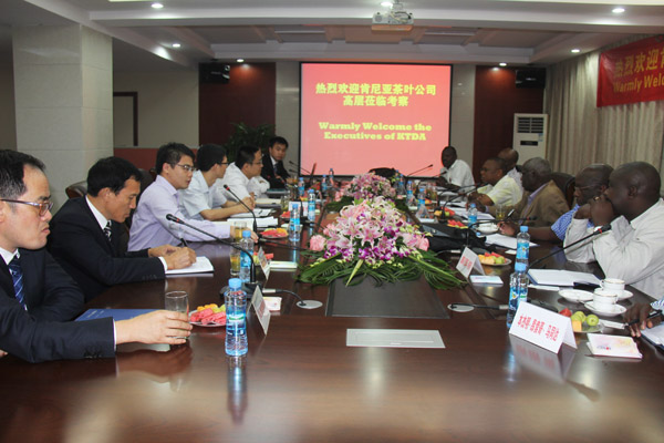 2014年9月上旬,肯尼亞茶葉發(fā)展有限公司董事Philip Kibirech NG’Etich先生一行七人應(yīng)邀來(lái)我公司參觀考察,旨在加深雙方了解和建立互惠共贏的合作??偨?jīng)理徐洪良代表公司對(duì)他們的到來(lái)表示熱烈歡迎,總會(huì)計(jì)師王義生、總工程師胡鴻煌及海外公司相關(guān)負(fù)責(zé)人參加了會(huì)見(jiàn)并陪同肯尼亞客人參觀了公司總部各部門(mén)。