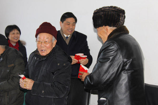 寒冬臘月,雪花飛舞。1月20日下午,水利廳黨委書(shū)記、廳長(zhǎng)孫曉山率廳人事處處長(zhǎng)周江紅、廳離退休干部處副調(diào)研員金光榮、曾三榮一行4人冒著嚴(yán)寒來(lái)我公司生活基地慰問(wèn)離退休職工。公司董事長(zhǎng)總經(jīng)理王元旦、黨委副書(shū)記王延軍、生活基地管理處相關(guān)負(fù)責(zé)人陪同慰問(wèn)。