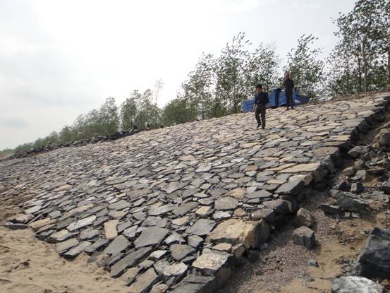 [注:九江長江江心洲固岸應(yīng)急度汛工程,包括九江縣江新洲1標(biāo)和彭澤縣棉船洲1標(biāo),由我公司中標(biāo)承建。工程主要建設(shè)內(nèi)容為拋石、砼四邊六面框架、干砌石護坡,項目總投資4000萬元。江新洲和棉船洲大堤共保護面積130.39 平方公里,保護耕地12.18萬畝,保護人口8.39萬人,圩區(qū)內(nèi)土地肥沃,灌溉便利,是江西省的重要棉油生產(chǎn)基地。]