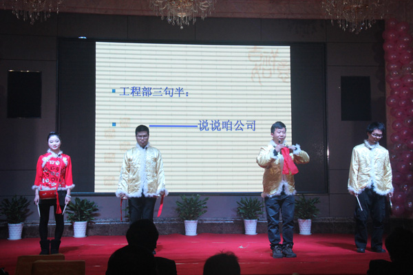 聯(lián)歡會(huì)現(xiàn)場喜氣洋洋,洋溢著新春的喜慶。董事長兼總經(jīng)理王元旦宣讀了2013年度優(yōu)秀表彰決定,并與公司領(lǐng)導(dǎo)班子一起,為海外公司等10個(gè)優(yōu)秀團(tuán)隊(duì)、黃鄭民等18位優(yōu)秀管理者和劉愚等21位優(yōu)秀員工進(jìn)行頒獎(jiǎng)。王總表示,希望受到表彰的先進(jìn)集體和先進(jìn)個(gè)人倍加珍惜榮譽(yù),戒驕戒躁、再接再厲,以更加開闊的眼界、更加務(wù)實(shí)的精神和更加昂揚(yáng)的斗志再創(chuàng)佳績;希望全司員工向先進(jìn)學(xué)習(xí),以先進(jìn)為榜樣,認(rèn)真學(xué)習(xí)貫徹黨的十八屆三中全會(huì)精神,勤奮工作、開拓創(chuàng)新,推動(dòng)公司更好更快地發(fā)展,為全面實(shí)現(xiàn)“公司強(qiáng),員工富”的目標(biāo)而努力奮斗!