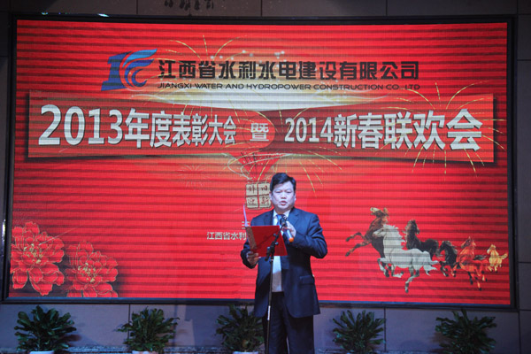 在隨后的新春聯(lián)歡會(huì)上,王總發(fā)表了熱情洋溢的新年賀詞,并代表公司董事會(huì)和領(lǐng)導(dǎo)班子,向全體員工、支持公司改革發(fā)展的離退休老同志和員工家屬,以及仍堅(jiān)守在工作崗位的海內(nèi)外一線員工致以節(jié)日的祝福和誠摯的問候。王總在致詞中說,2013年是公司發(fā)展史上不平凡的一年,在公司董事會(huì)的正確領(lǐng)導(dǎo)下,全體員工以企業(yè)為家,團(tuán)結(jié)一心、不畏艱難,腳踏實(shí)地、開拓創(chuàng)新,沿著年初制定的各項(xiàng)工作目標(biāo)努力奮進(jìn)。公司各項(xiàng)事業(yè)繼續(xù)保持蓬勃發(fā)展的良好形勢,朝著質(zhì)量好、品牌優(yōu)、市場廣的集團(tuán)型企業(yè)方向邁進(jìn)。2013年,公司開拓進(jìn)取、勇于突破,準(zhǔn)確定位、大膽決策,利用資本運(yùn)作境內(nèi)外項(xiàng)目,以投融資帶動(dòng)市場,在國內(nèi)嘗試承接BT項(xiàng)目,國外則跨行業(yè)進(jìn)入投資領(lǐng)域,利用投資經(jīng)營提升企業(yè)競爭力。王總指出,公司在2013年取得了一系列優(yōu)秀的成績,兩項(xiàng)省級(jí)工法和兩項(xiàng)部級(jí)工法通過評(píng)審,內(nèi)部管理制度日益健全,爆破資質(zhì)、城市園林綠化資質(zhì)通過審核,在國際工程建設(shè)領(lǐng)域發(fā)展迅速,被譽(yù)為江西水利行業(yè)走向世界、開拓國際市場的排頭兵。