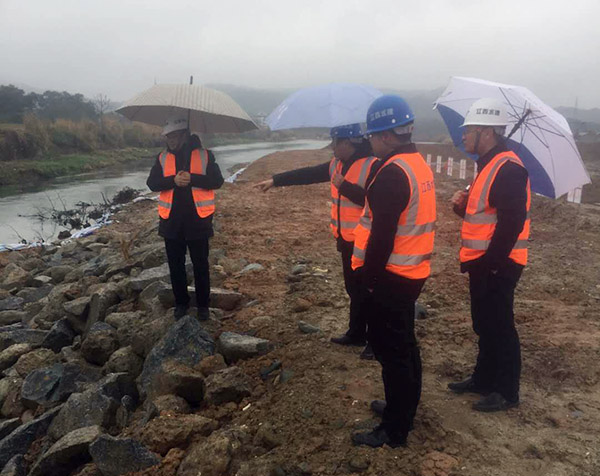 徐洪良總經(jīng)理一行在仔細查看了施工現(xiàn)場后,認真聽取了項目部主要管理人員對前階段的生產(chǎn)管理情況和后續(xù)工作安排的詳細匯報。在與項目部管理人員的座談會議上,徐洪良總經(jīng)理對前一階段項目部全體成員克服諸多困難取得的工作成績給予了充分肯定。同時,指出了在施工管理過程中需加以改善的不足之處,并為后續(xù)的工作開展提出了明確的工作目標和要求:一是項目部全體人員要加緊從春節(jié)長假的狀態(tài)中調(diào)整過來,快速進入到良好的工作狀態(tài);二是項目部要科學謀劃、緊盯目標,在制定科學的度汛預案前提下加快施工進度,防范桃花汛對工程施工造成的風險和影響,并要求切實做好安全度汛的各項工作;三是繼續(xù)狠抓安全生產(chǎn)工作不放松,始終保持安全生產(chǎn)管理的高壓態(tài)勢,切實加強現(xiàn)場安全管理,確保施工安全;四是持續(xù)改進質(zhì)量管理方法,不斷提高全員質(zhì)量意識和管理水平,優(yōu)質(zhì)高效地推進項目建設,打造品牌工程。