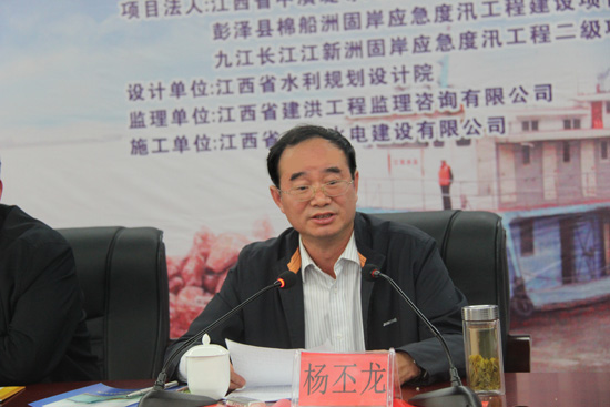 省水利廳副廳長楊丕龍在會上作了重要講話,他對九江長江江心洲固岸應急度汛工程棉船洲1標和江新洲1標進展予以充分肯定,并代表省水利廳黨委向有關單位和部門對水利建設的關心和支持表示衷心感謝,向奮戰(zhàn)在固岸應急度汛工程建設一線的參建各單位和工作人員表示親切慰問。