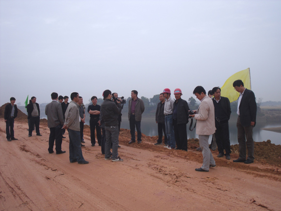 2011年11月18日,省水利廳文林副廳長(zhǎng)在上饒市水利局、萬(wàn)年縣政府相關(guān)領(lǐng)導(dǎo)的陪同下,來(lái)到我司承建的鄱陽(yáng)湖二期防洪工程第六個(gè)單項(xiàng)梓埠聯(lián)圩除險(xiǎn)加固工程萬(wàn)年縣梓埠1標(biāo)視察指導(dǎo)工作。