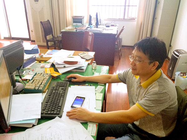 走進(jìn)財(cái)務(wù)部的辦公室,周家煌的辦公桌上的擺設(shè)一目了然:桌面整潔干凈,桌上的文件排放的整齊有序。左上角壘起來(lái)的倆堆書籍,其一是《財(cái)務(wù)會(huì)計(jì)》、《中國(guó)稅務(wù)》等財(cái)務(wù)專業(yè)的雜志;另一堆書籍置于頂部的是《計(jì)算機(jī)財(cái)務(wù)管理:財(cái)務(wù)建模方法與技術(shù)》,往下的是諸如《計(jì)算機(jī)辦公軟件應(yīng)用》、《信息時(shí)代的財(cái)務(wù)創(chuàng)新》等。