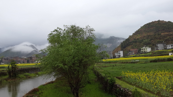 玉山縣樟村鎮(zhèn)防洪工程項(xiàng)目所在地,一眼望去,左邊是革命教育基地懷玉山,右邊是世界地質(zhì)公園三清山(如上圖)。