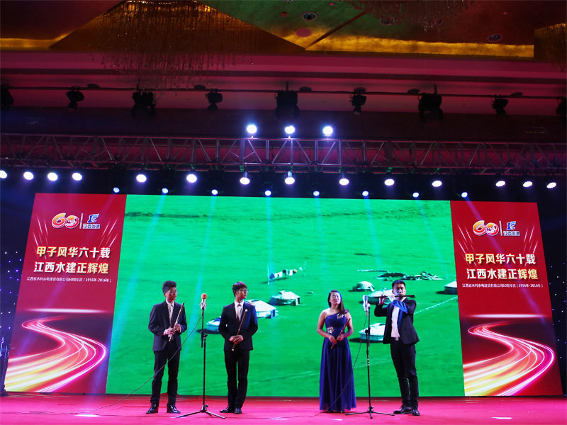 在喜慶熱鬧的開場舞《盛世中華》樂曲聲中,拉開了晚會的序幕,一曲優(yōu)美動聽的《今天是你的生日》,表達(dá)了對公司六十華誕的深情祝福,配樂詩朗誦《我驕傲,我是水建人》抒發(fā)了水建人對水利事業(yè)的熱愛與執(zhí)著,舞蹈《我的祖國》,展現(xiàn)了公司退休女職工的精神風(fēng)采和對公司的深厚感情,男聲獨唱《羅灣那個地方》,喚起了多少“羅灣水建人”曾經(jīng)在那里生活的記憶,來自上海的退休職工代表,為晚會帶來一首自己改編的歌曲《水建的朋友來相會》,詮釋了他們的激情與夢想,最后,由公司高中層管理人員和總部員工組成的60人大合唱《團結(jié)就是力量》,把晚會推向了高潮。團結(jié)是我們的力量之源,團結(jié)是企業(yè)騰飛的支點,走過了六十年輝煌歷程的江西水建,正在昂首闊步踏上新的征程。讓我們團結(jié)起來,以必勝的信心,發(fā)奮的努力,繼承和發(fā)揚老一輩水建人的精神和傳統(tǒng),擔(dān)當(dāng)起新一代水建人改革創(chuàng)新科學(xué)發(fā)展的光榮使命,繼往開來,解放思想,開拓創(chuàng)新,凝心聚力,不斷開創(chuàng)江西水建發(fā)展的新局面,創(chuàng)造更加燦爛的明天!