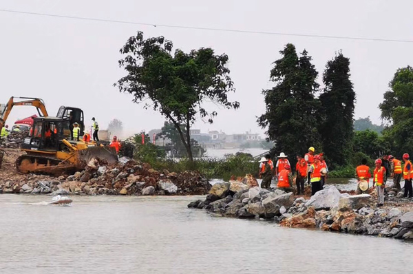 公司技術(shù)組專家張周平、王俊華、曾朝文,彭燦華等領(lǐng)導(dǎo)在現(xiàn)場進行技術(shù)指導(dǎo)。專家組研究發(fā)現(xiàn),當日水流過大,石料來源缺失,難以立即對決口進行合攏施工。需要待水流平穩(wěn),石料來源落實后,才可開始。