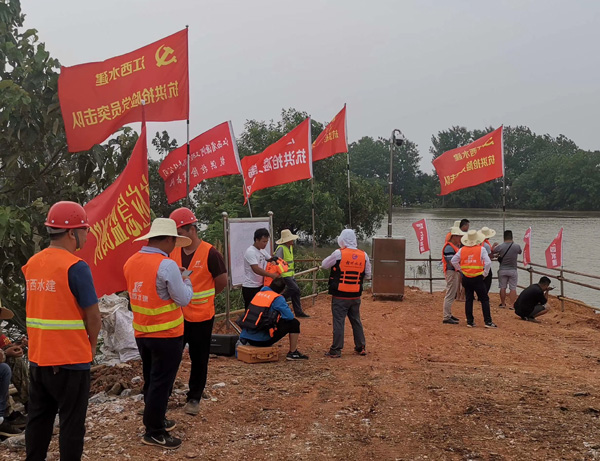 7月12日晚,九江市永修縣三角聯(lián)圩發(fā)生潰堤,決口長度100多米,洪水淹沒了圩堤內(nèi)紅旗村、永豐墾殖場等部分地區(qū)。公司在接到省防指和水利廳下達的防汛任務(wù)后,積極響應(yīng),緊急抽調(diào)并組建了一支90余人的專業(yè)隊伍,并迅速落實機械設(shè)備。由公司黨委書記、董事長王元旦親自帶隊,星夜馳援一線。